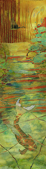 "Sunrise Tapestry"dyed, layered and quilted silk 14" x 50"