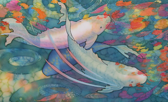 "How the Koi Found Their Spots"16" x 26"dye on silk