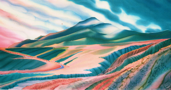 "Desert Fog" dye on silk 42" x 22" Giclee prints available 33" x 17" 21" x 11"