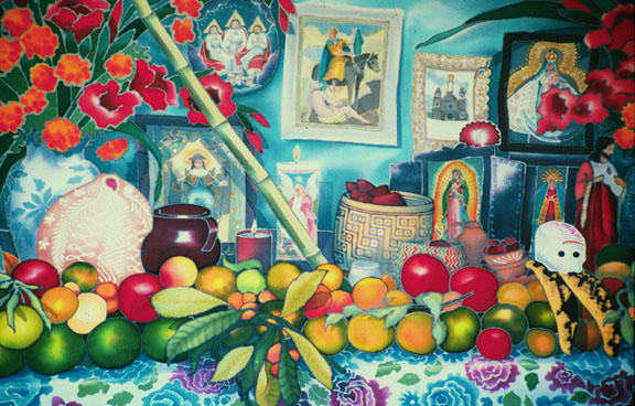 "Offerings" dye on silk 38" x 28" Giclee prints available 34" x 24" 16.5" x 11"
