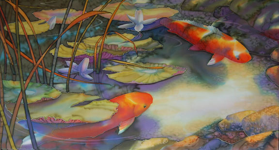 "#435 Sunlit Sanctuary I" dye on silk 44" x 27" framed SOLD