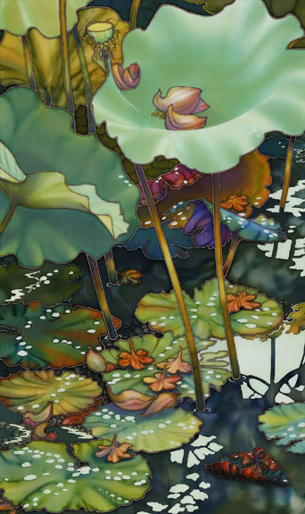 #464 After the Rain II dye on silk 32" x 19" framed 40" x 27"