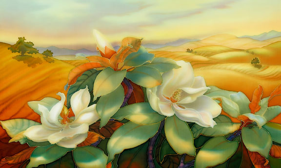 "California Glow" dye on silk 21" x 35"